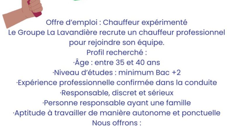Be the first to comment on "Le Groupe La Lavandière recherche un chauffeur professionnel pour rejoindre son équipe."